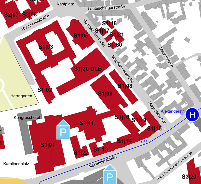 The lecture hall Wilhelm Köhler Hall is located in section Stadtmitte Central (S1) within the Old Main Building (S1/03). Google maps